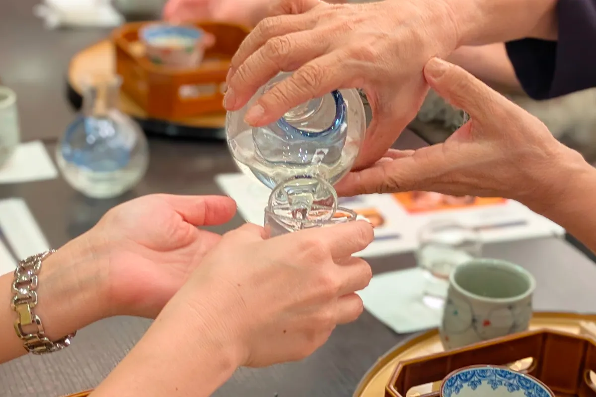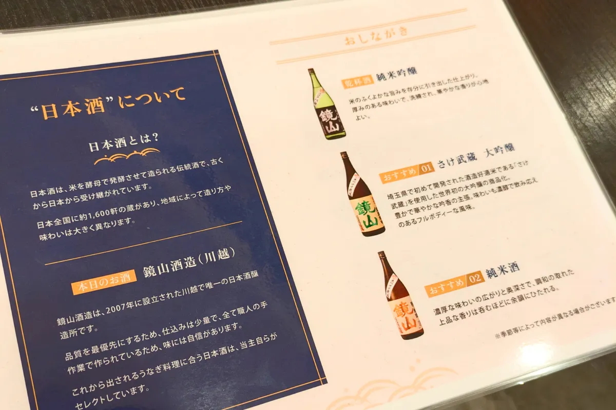 ツアーのうなぎコースにはドリンクが含まれていませんが、オプションで日本酒ペアリング(3種類)も用意されています。