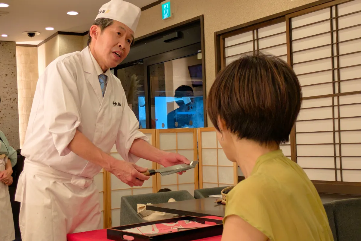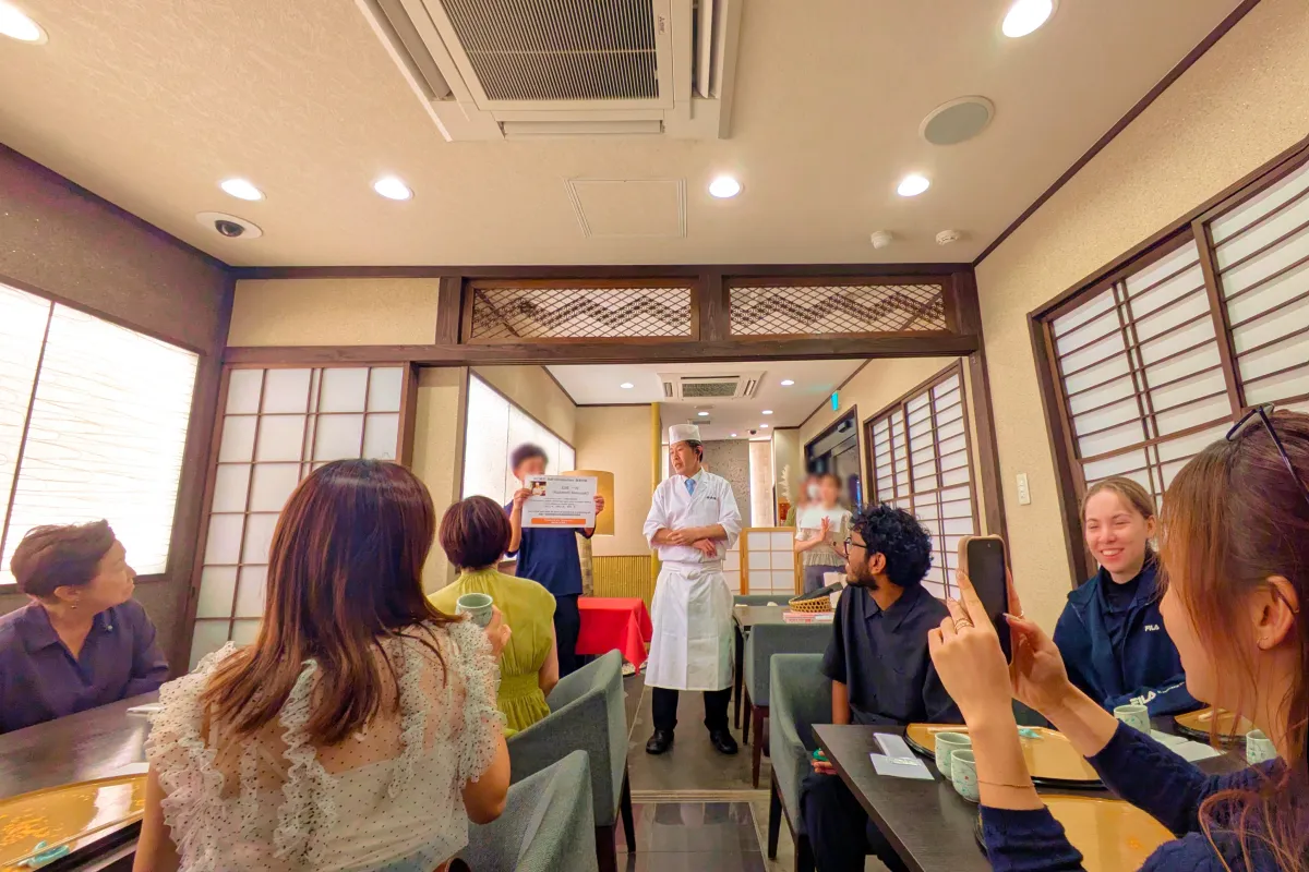 Washoku 大穀 川越菓子屋横丁店に入店し着席したら、お店や職人のご挨拶。