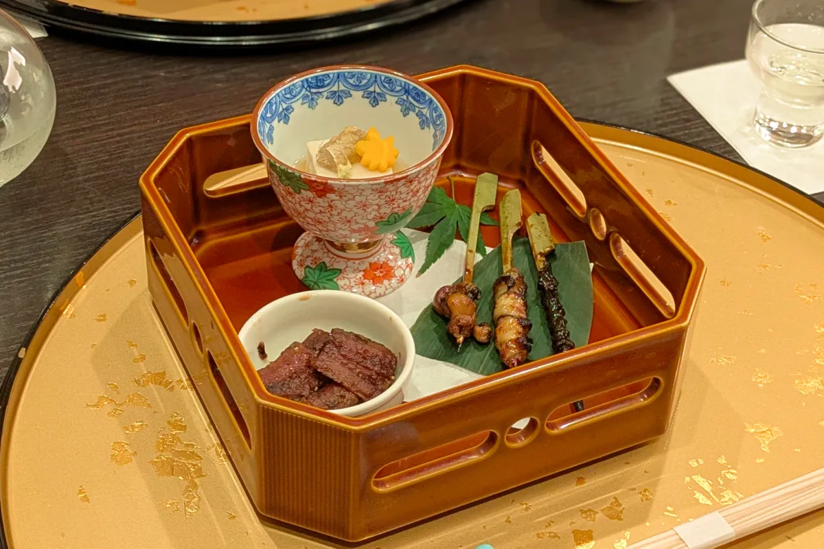 日本酒3種のペアリングオプションをつけると、日本円で2万7500円です。
