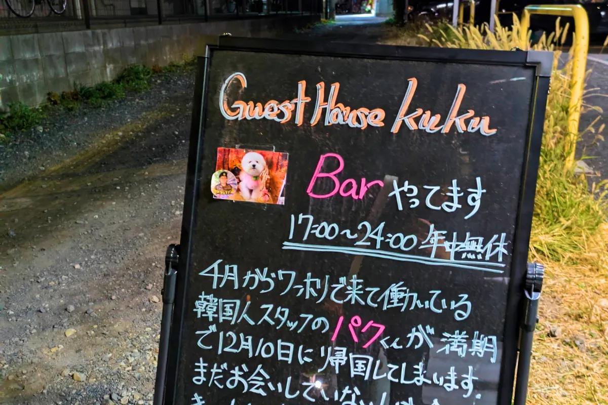 17時頃からは、路地の表にゲストハウスくく川越店の看板が。