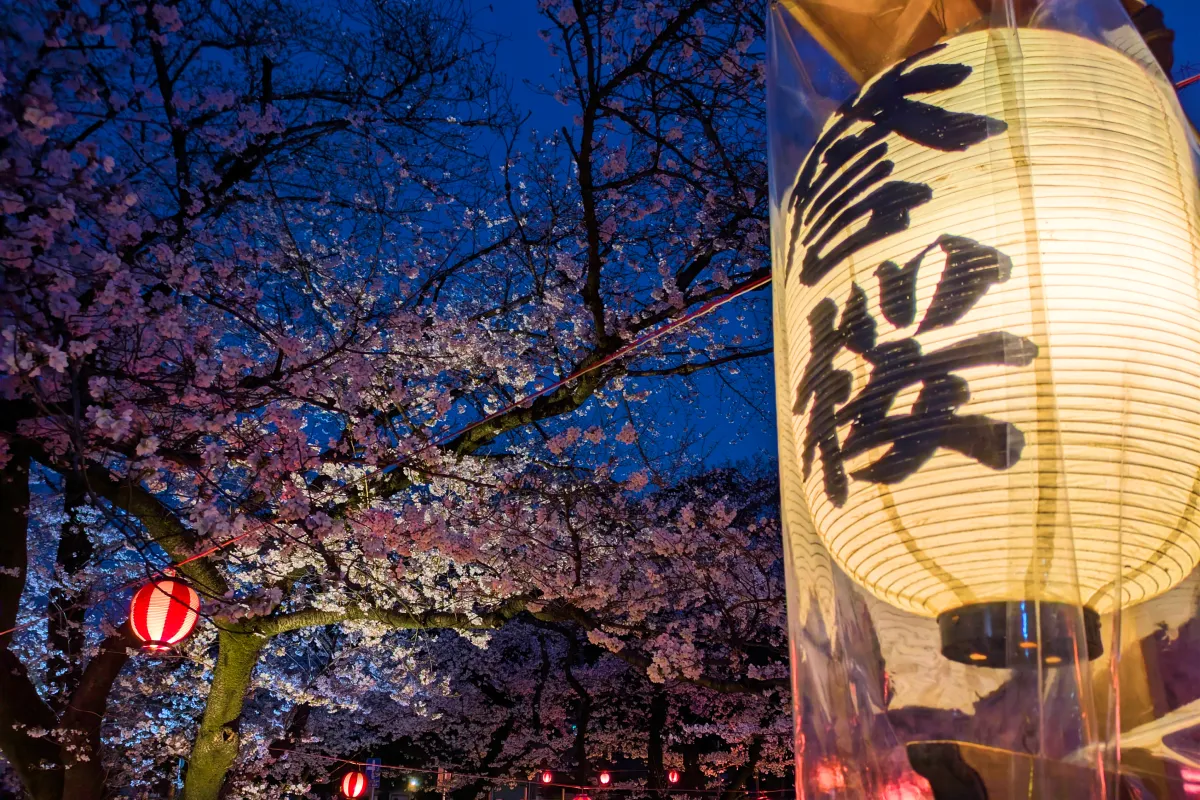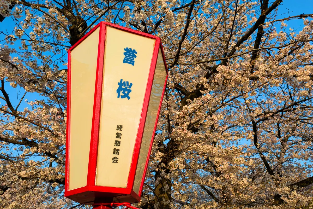 提灯の暖色系の照明に照らされる誉桜もきれいですね。