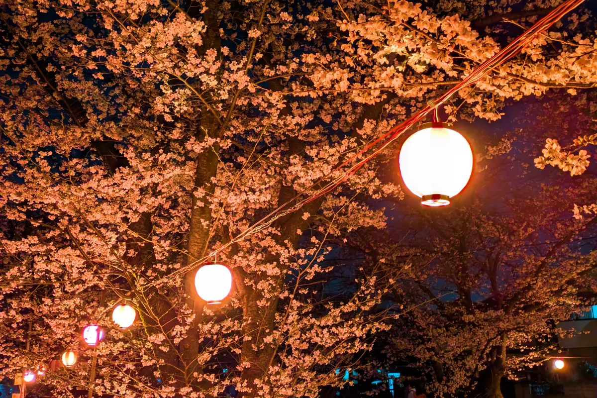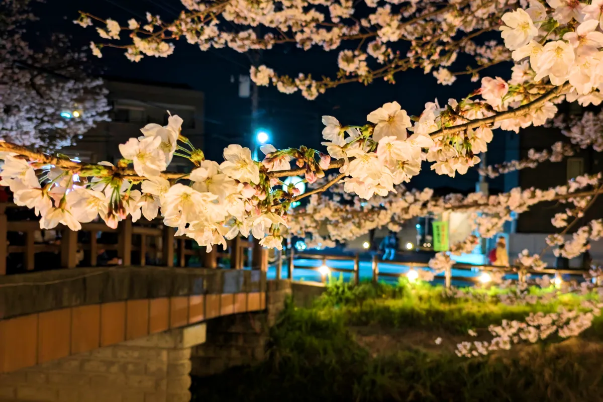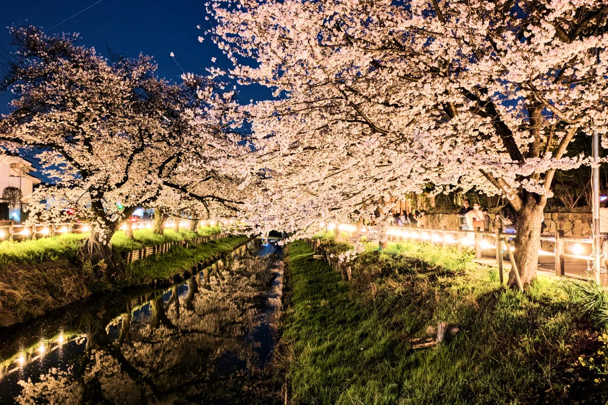 誉桜・氷川橋の見どころで外せないのが、桜並木のライトアップ!