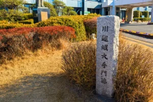 川越城 西大手門跡は、川越市役所前に石碑と太田道灌像が並ぶ、川越城の正門があった場所です。