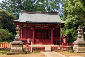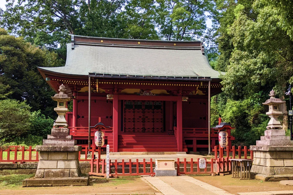 社殿は朱漆塗を基調とした権現造で埼玉県指定文化財。