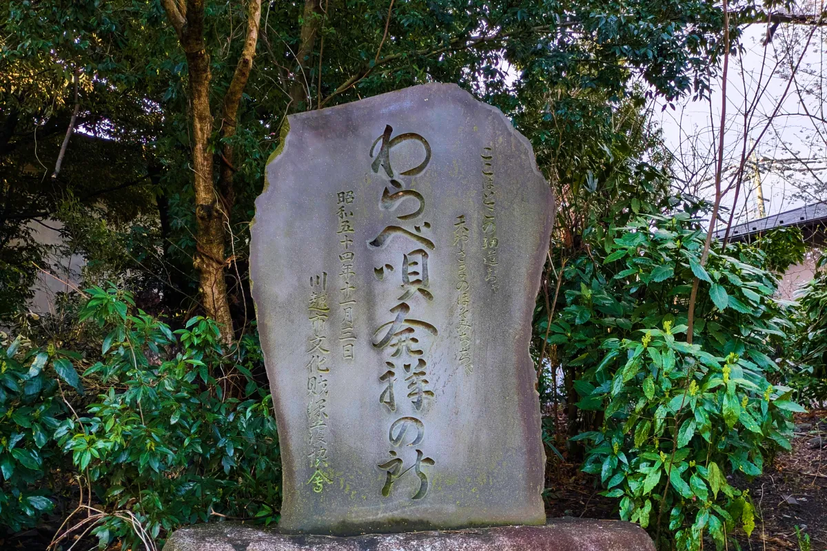境内には「わらべ唄発祥の地」の石碑が残ります。