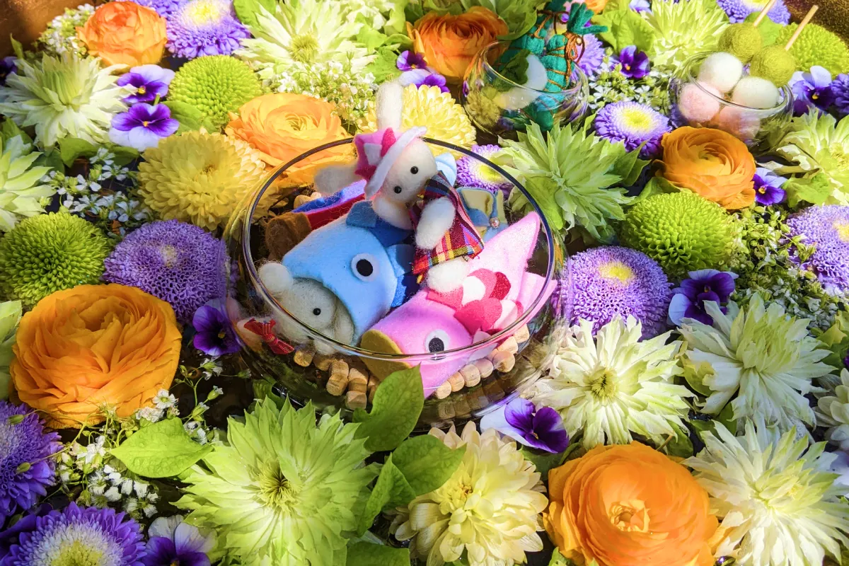 4月末に訪れた際は鯉のぼりの花手水!