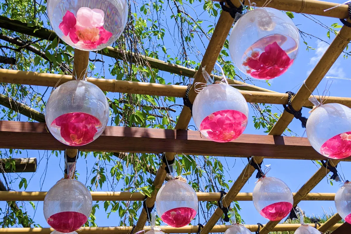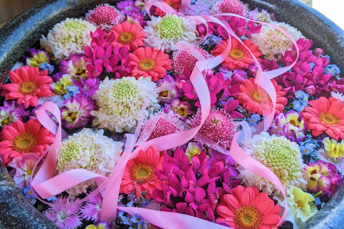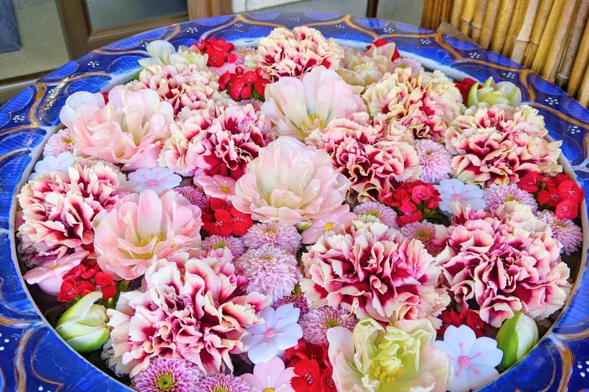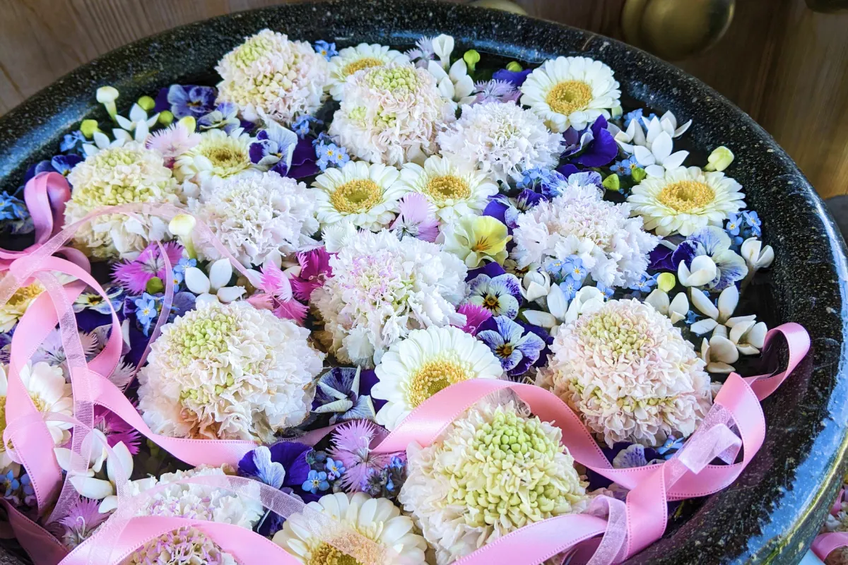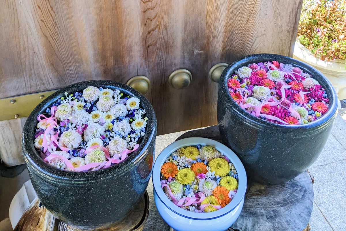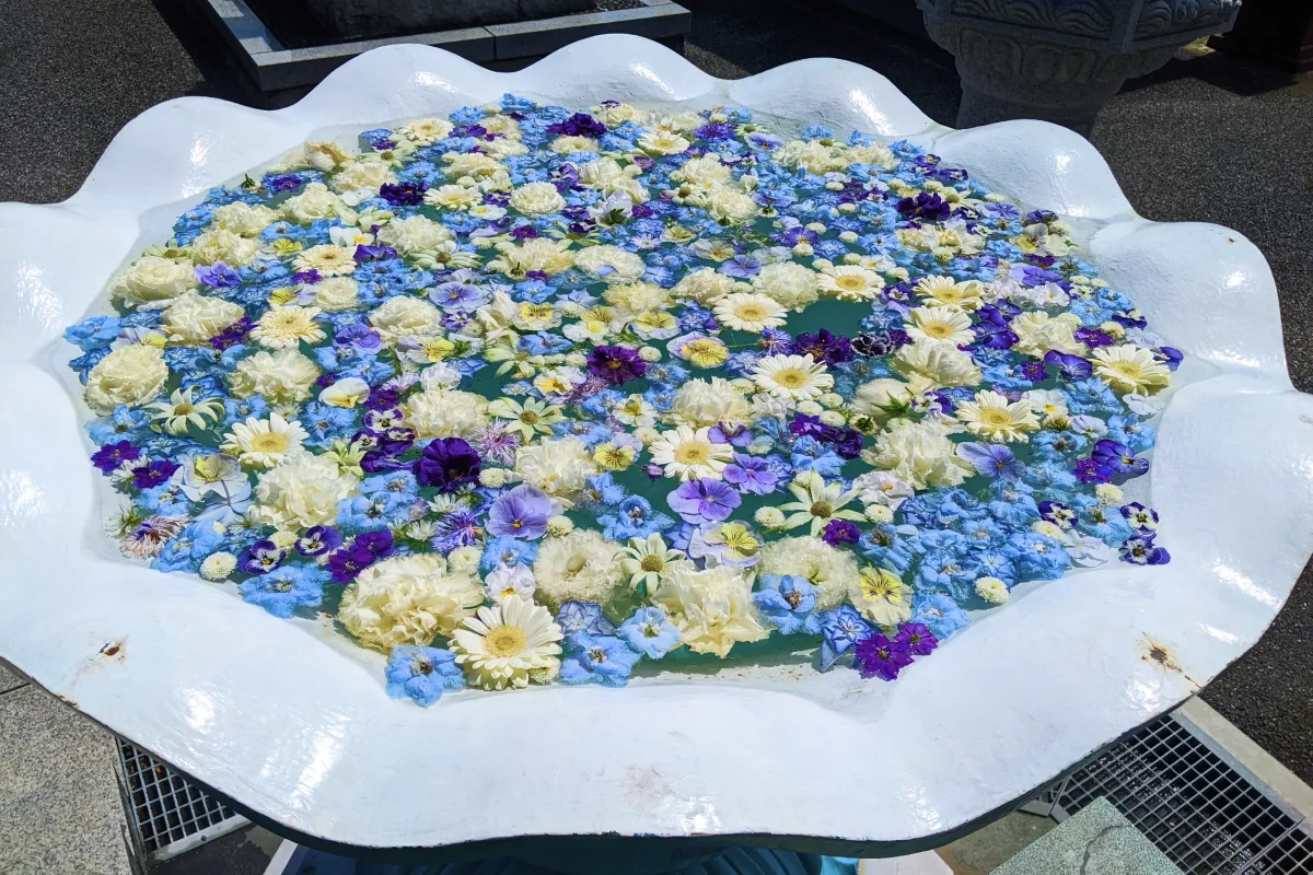 境内の各所に美しい花が浮かべられた水鉢が置かれていて、その美しさがSNSで広まり、写真を目的に訪れる人が急増しました。
