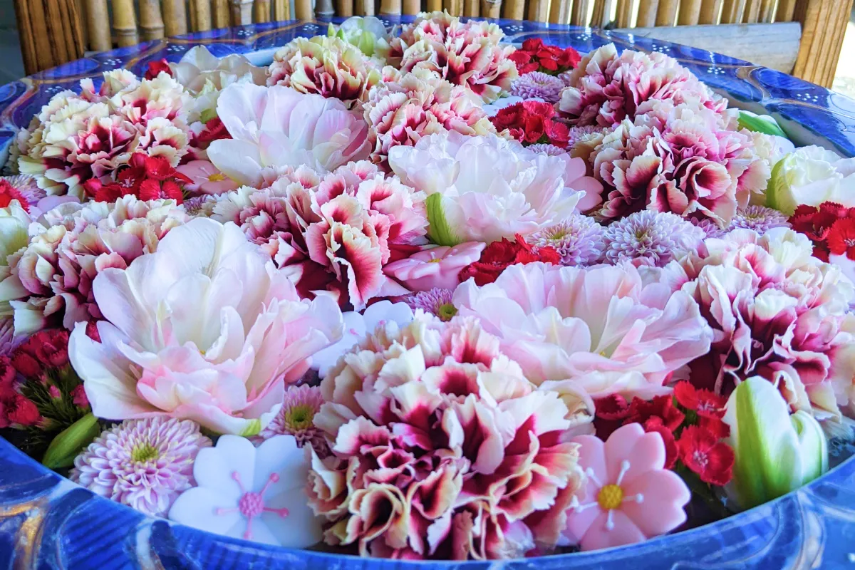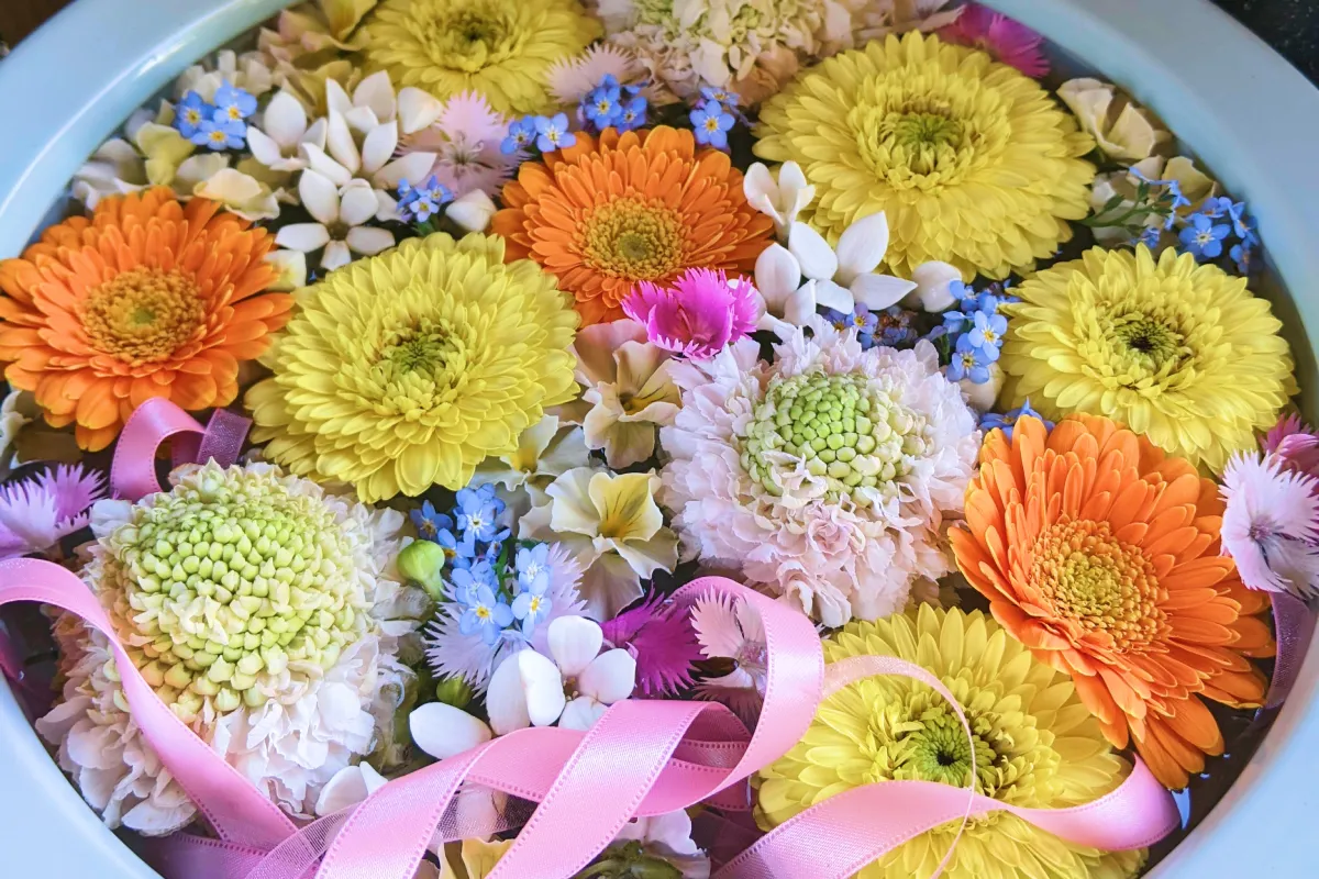 最明寺の花手水のなかでも特に大きく見応えある花手水!