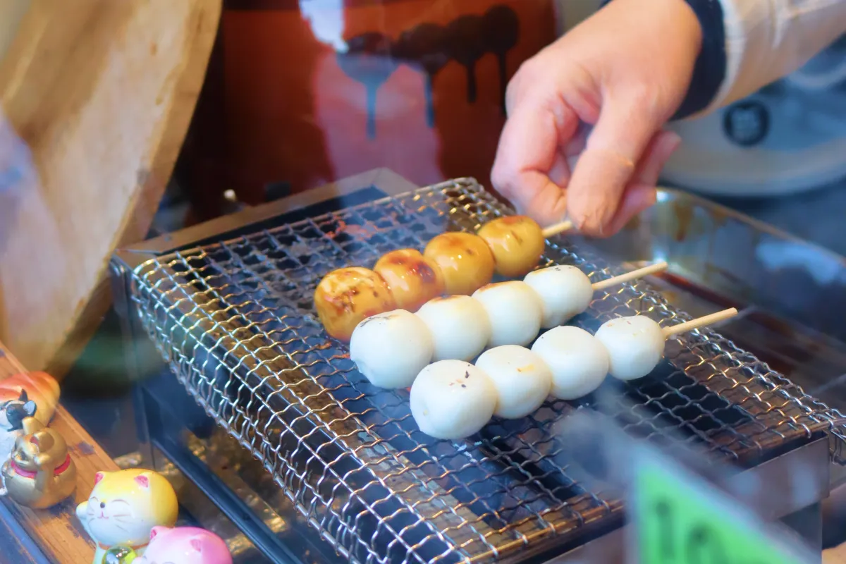 注文後に団子を焼き上げるもっちもちの団子。