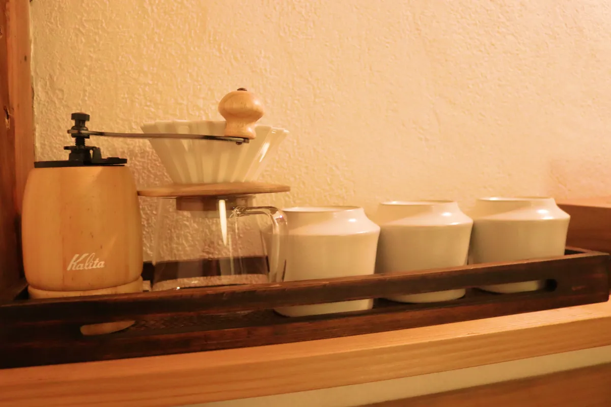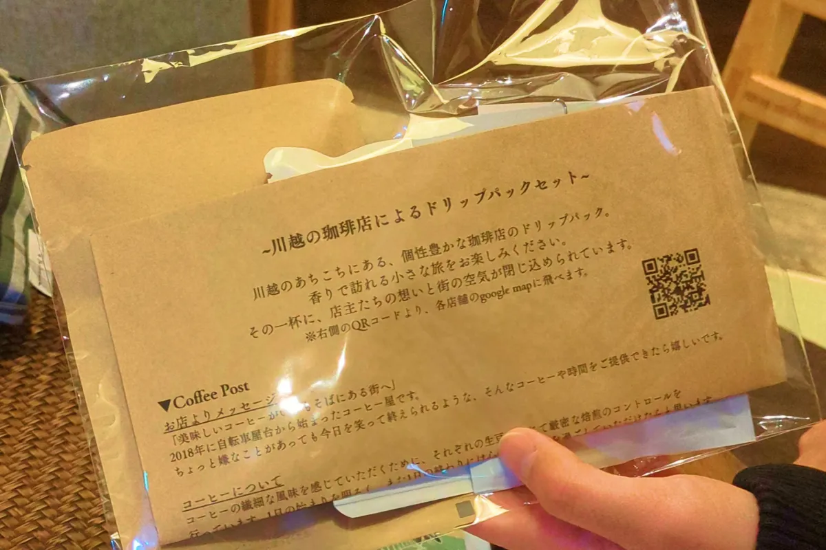 川越は珈琲の個人店が多い街。川越メル珈琲、COFFEE POSTなどなどのドリップパックセットもアメニティに。