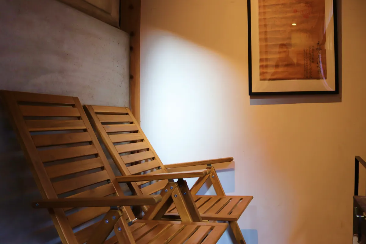 そして、プライベートサウナ・シャワールームを出て入口とリビングの間の空間にはサウナチェアが。