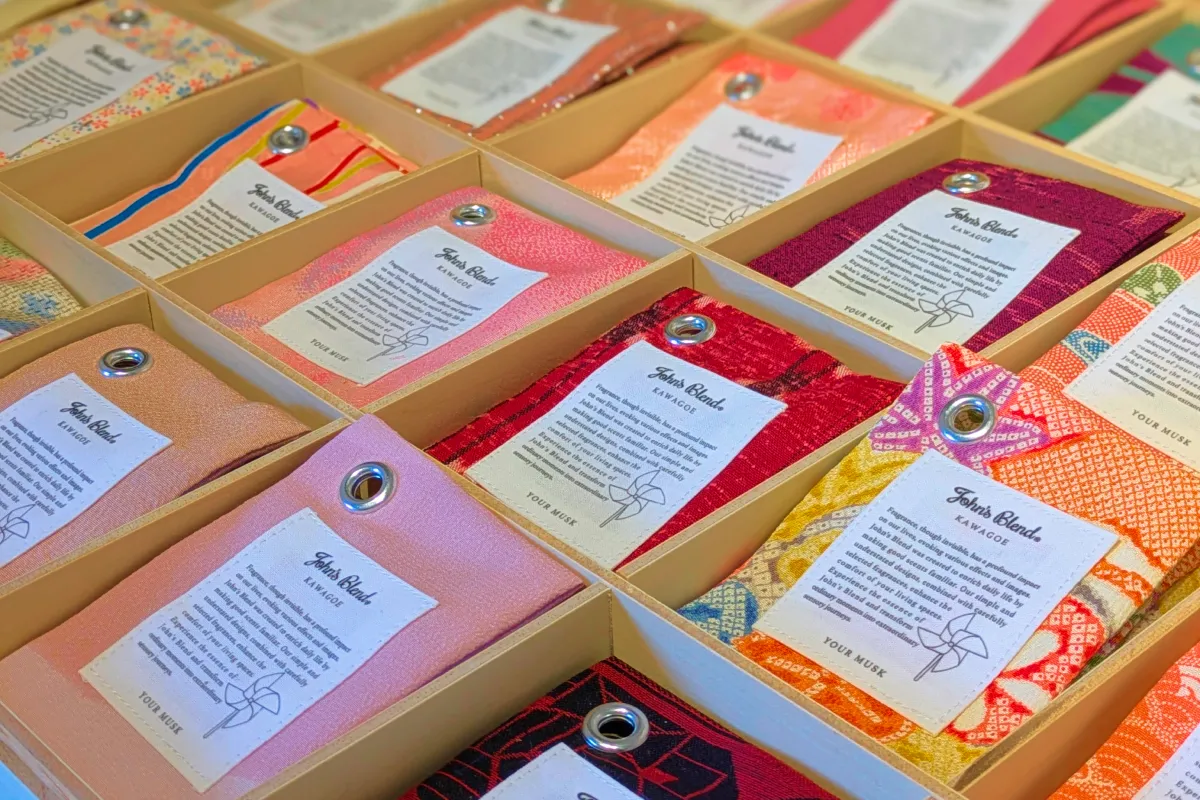 YOUR MUSK by John’s Blend 川越店のサシェ袋は着物をアップサイクルした生地を使用。