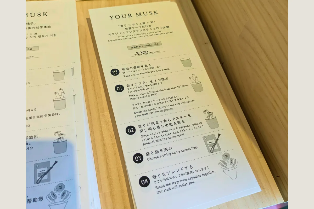 YOUR MUSK by John’s Blend 川越店では、オリジナルフレグランスサシェ作り体験ができます。